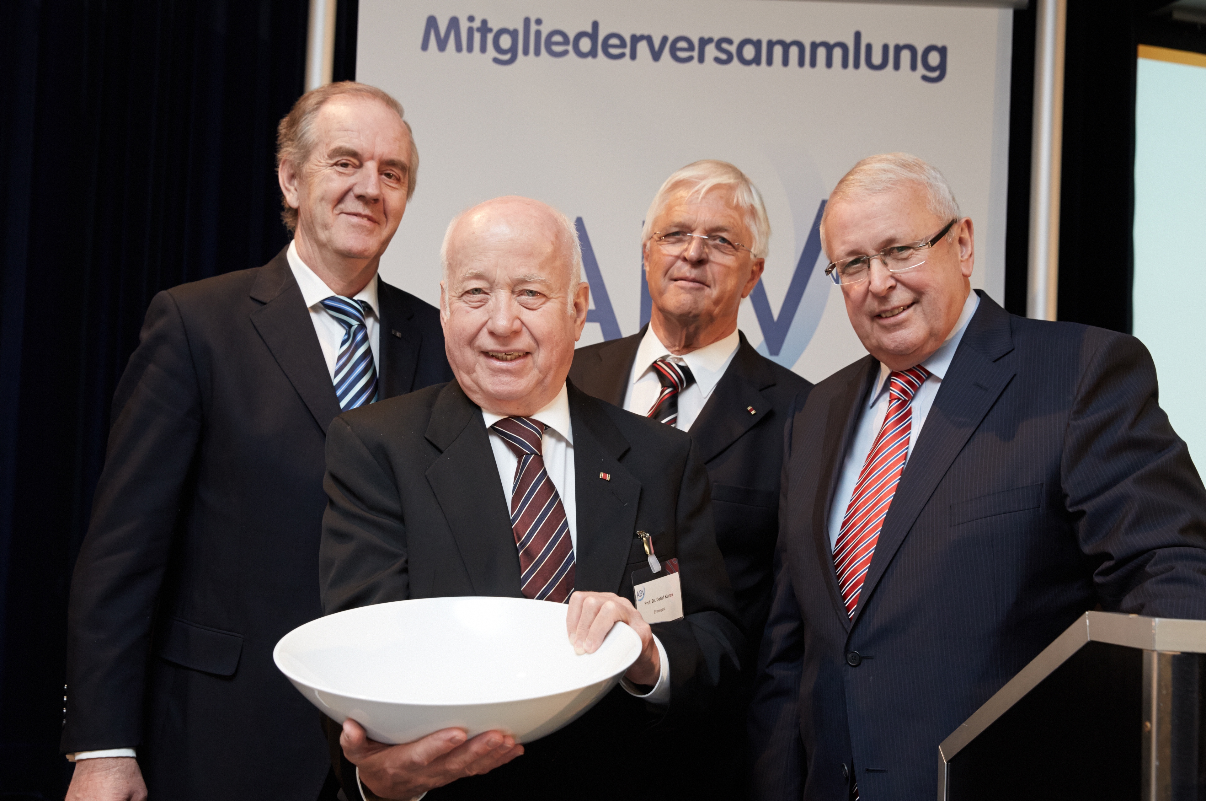 Die berufsständischen Versorgungwerke der Freien Berufe danken Herrn Gerd-Rudolf Volck für sein Engagement in ihrer Sache und verleihen ihm die vom Vorstand der ABV aus Anlass des Jahrestages der Wiederkehr der Gründung der ABV (1998) gestiftete Ehrenschale.